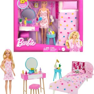 Barbie Doll and Bedroom Playset, Barbie Furniture and Storytelling Accessories HPT55